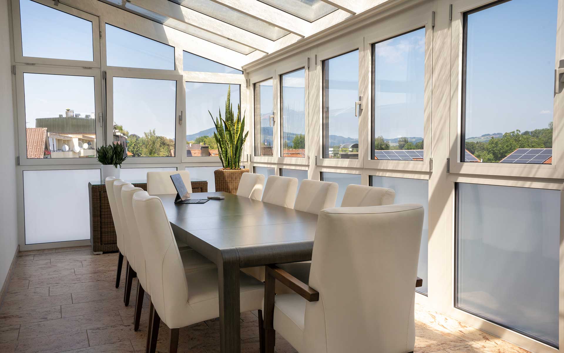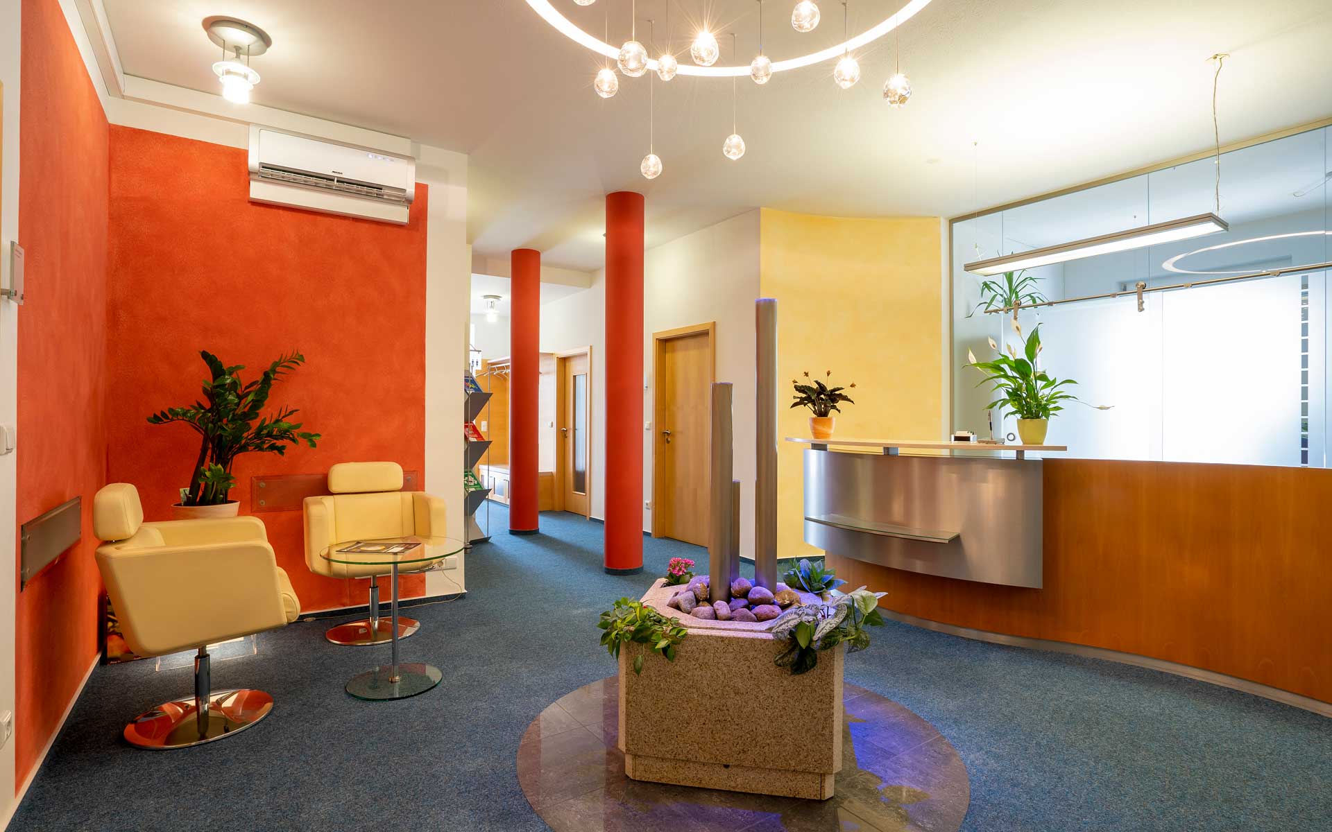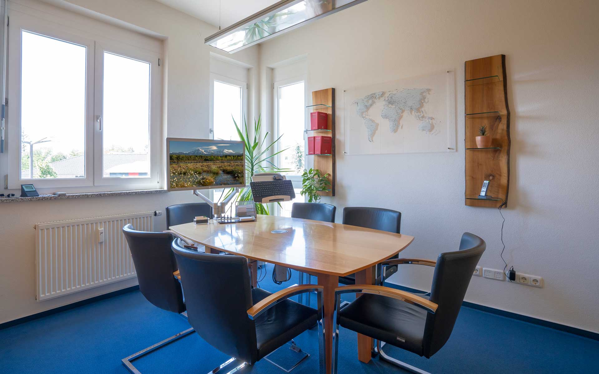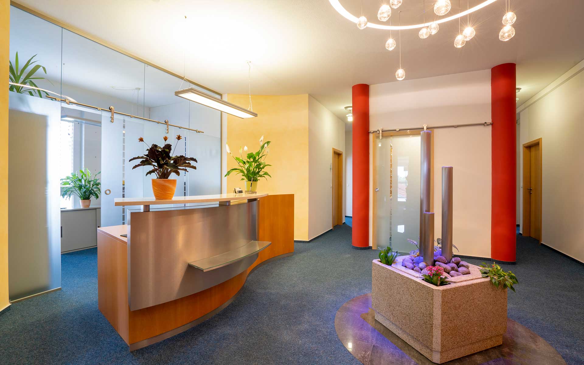 Die Büroräume sind nach allen Seiten durch großzügige Fenster auf natürliche Weise hell beleuchtet. Selbstverständlich sind die Arbeitsräume nach modernsten Kriterien ausgestattet und intelligent in ein-zwei Personen-Büros abgetrennt. So sind jederzeit vertrauliche Gespräche mit den Mitarbeitenden möglich und eben auch ungestörtes Arbeiten.